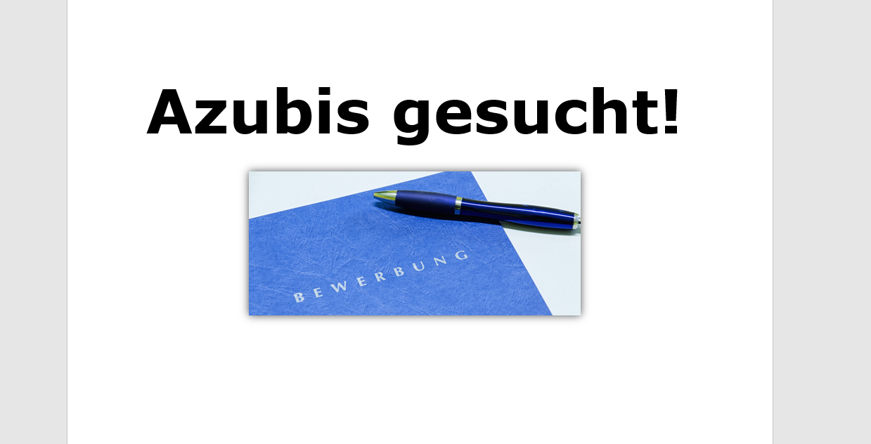 17.06.2020 Stellenausschreibungen17.06.2020Auszubildende gesucht! Die Bewerbungsfrist läuft noch bis zum 31.08.2020Mehr